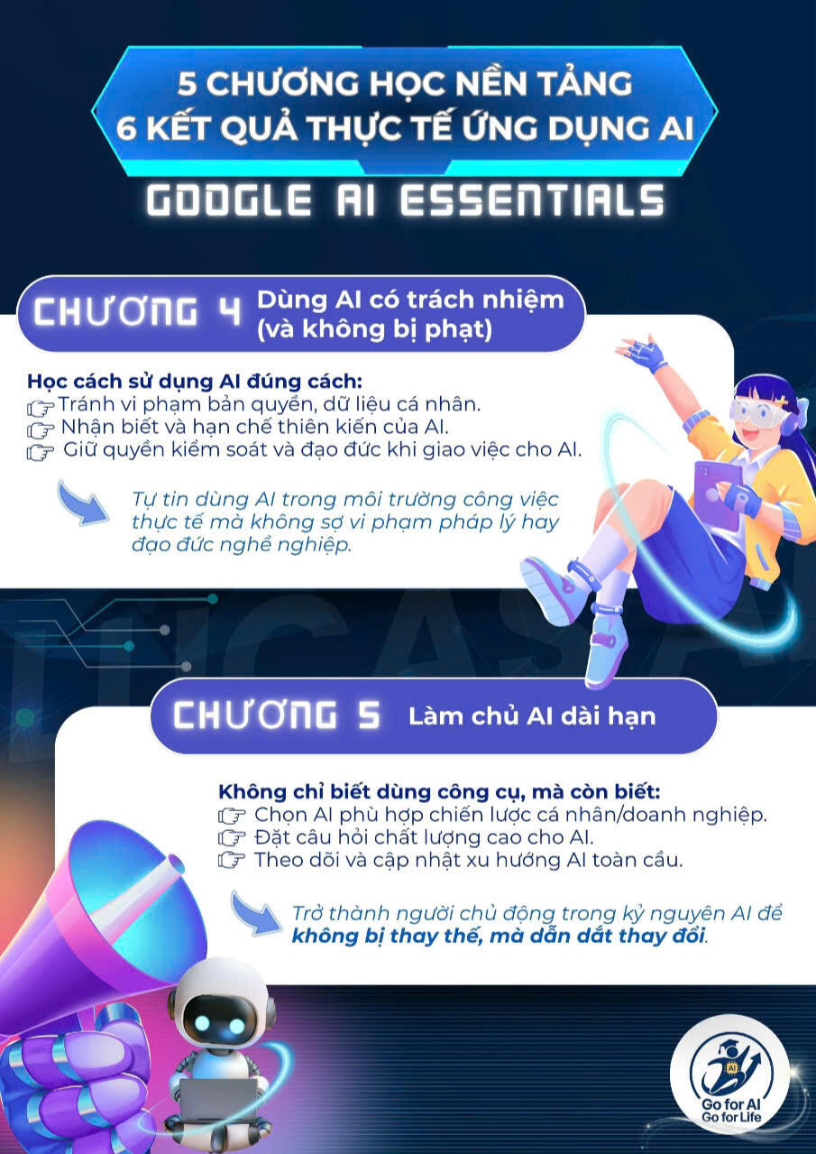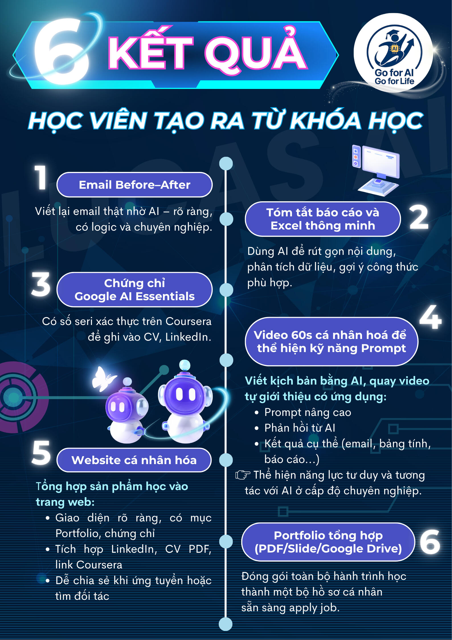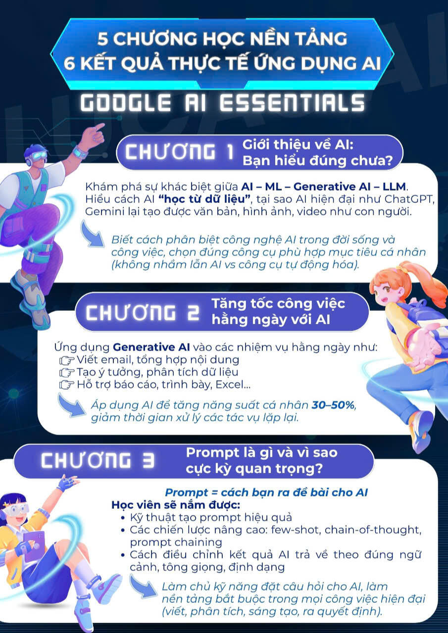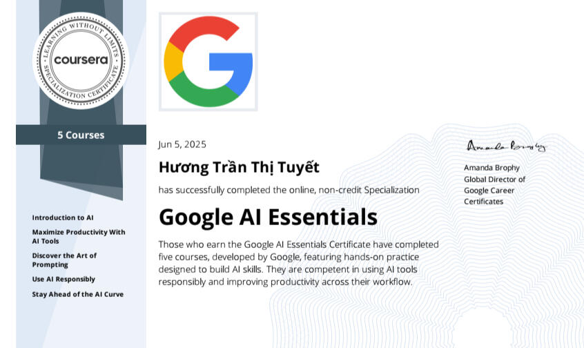 - Giúp hàng trăm học viên thi đậu Google AI Essentials & hoàn thiện portfolio