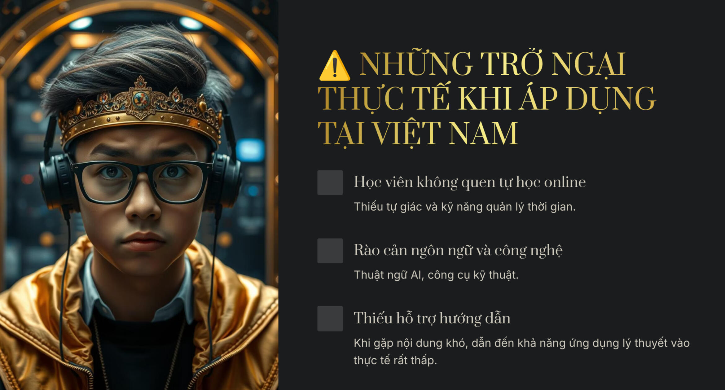 – Giảng dạy bằng tiếng Việt, kèm theo slide, tài liệu, hướng dẫn từng bước ứng dụng AI.